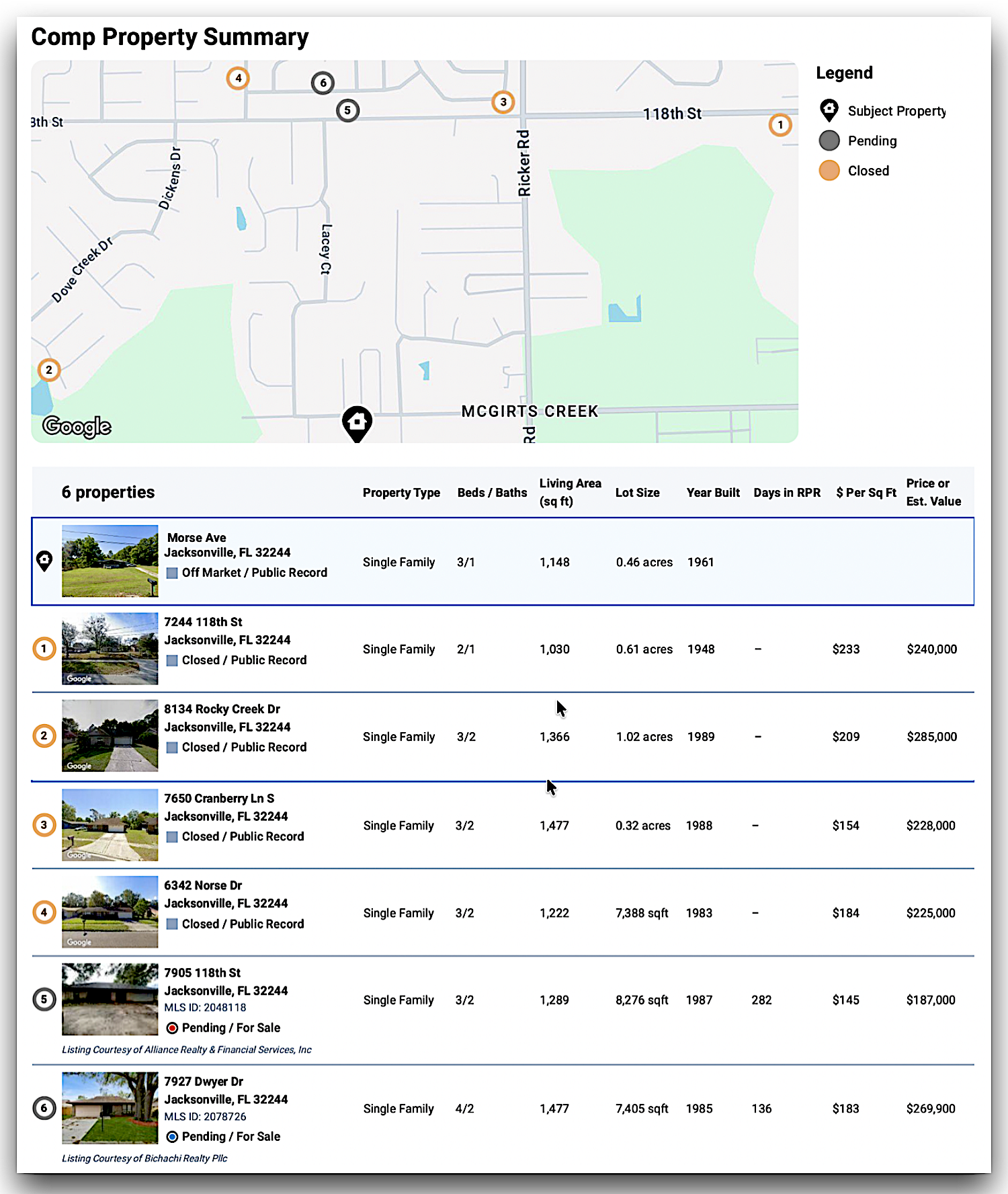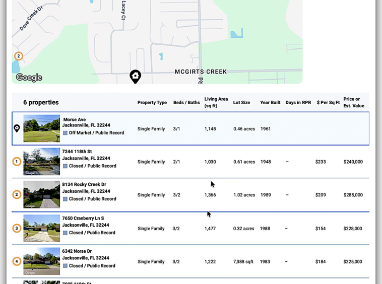 - 2443 E Jersey Ave – 2/1 | 822 sf | Pending $270,000 ($328/sf) | 1955 Built | Smaller footprint