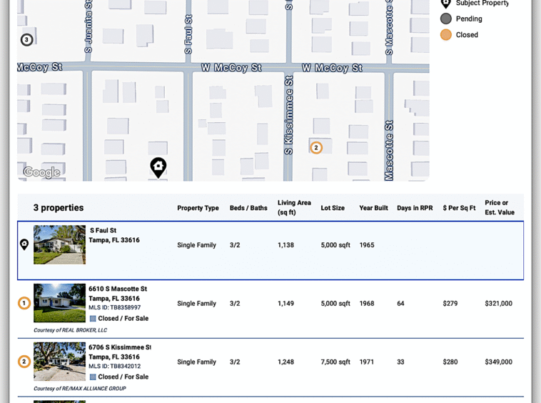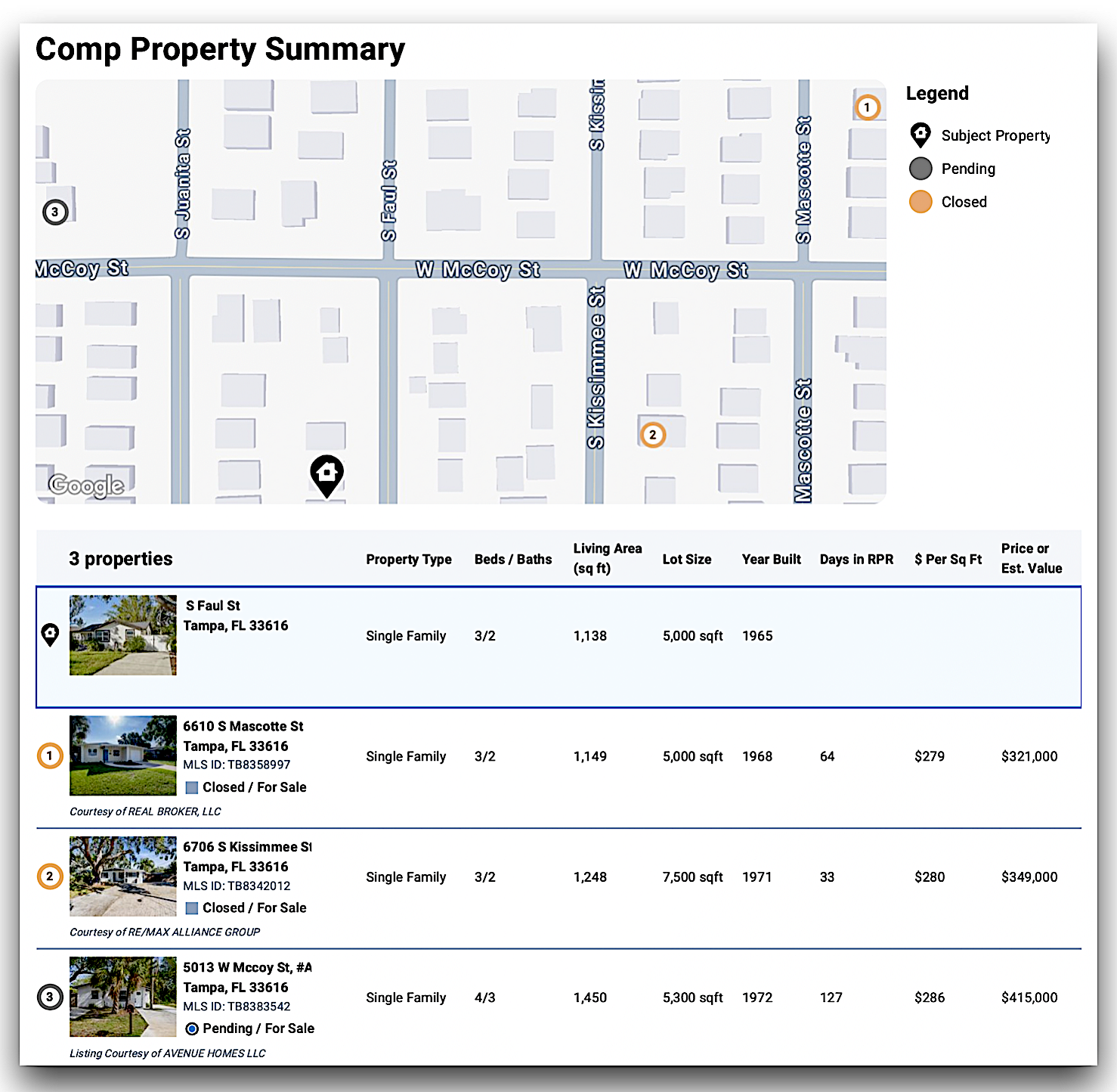 This 1,138 sq ft 3-bed, 2-bath single-family home sits on a 5,000 sq ft lot in the growing South Tampa corridor. Built in 1965, the property offers a functional layout with block construction and strong comparable sales nearby. With remodeled 3/2’s on the same street selling in the $320K–$350K range, this is a straightforward cosmetic flip or rental refresh with solid upside.