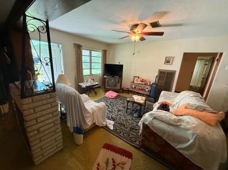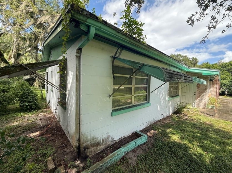 This 1,187 sf 2-bed, 2-bath single-family home sits on a 0.41-acre lot in Mims (likely 1959 build). It needs a full interior/exterior rehab but offers solid upside given nearby retail.